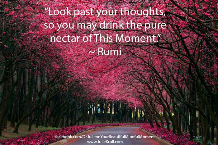 I have learned to simply take 5 minute (or less) “breath breaks” scattered throughout the day to check in. Scanning the body brings awareness to any tension in the body, holding of the breath, or shallow breathing….. without judgement. Taking a few fully engaged breaths expanding and releasing all of the primary breathing muscles – diaphragm, intercostal (between the ribs) and abdominal, reminds me of being present NOW no matter what is happening, and allows me to feel alive not just in my mind! The body loves this attention!!